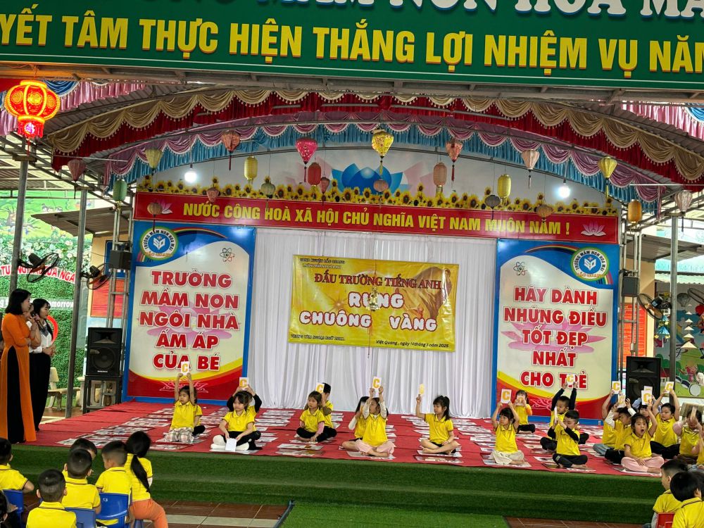 Với mong muốn tạo sân chơi lành mạnh, bổ ích, thử thách khả năng tiếng Anh cho các bé mẫu giáo, giúp các bé mạnh dạn, tự tin cũng như rèn luyện trí tuệ, ngày 14/3/2025 Trung tâm ngoại ngữ ZuKa phối hợp với Trường MN Hoa Mai tổ chức cuộc thi "Rung chuông vàng" đấu trường Tiếng Anh.