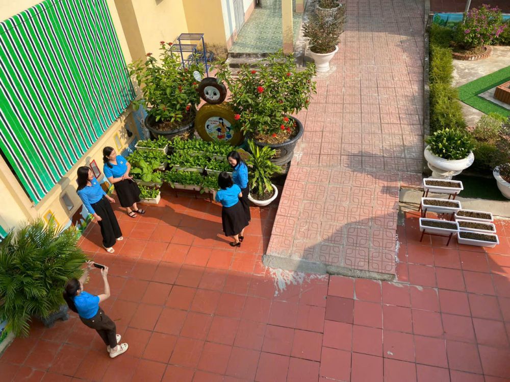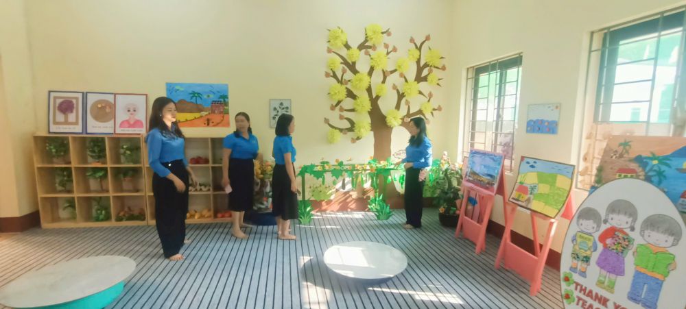 Sáng ngày 08/11/2024 Công đoàn MN Hoa Mai gắn biển Mô hình “Công sở Xanh - Sạch - Đẹp