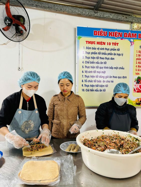 Sáng ngày 12/03/2025 BGH trường MN Hoa Mai phối hợp với Hội cha mẹ học sinh kiểm tra bếp ăn và thực đơn, công tác lưu mẫu thức ăn